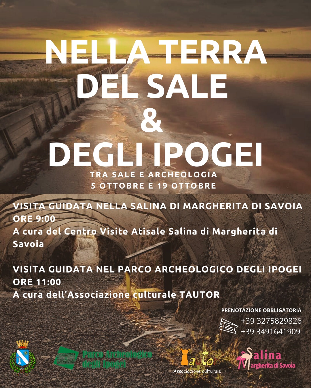 Il Parco Archeologico degli Ipogei e il Centro Visite Atisale della Salina di Margherita di Savoia ti conducono in visite guidate uniche.