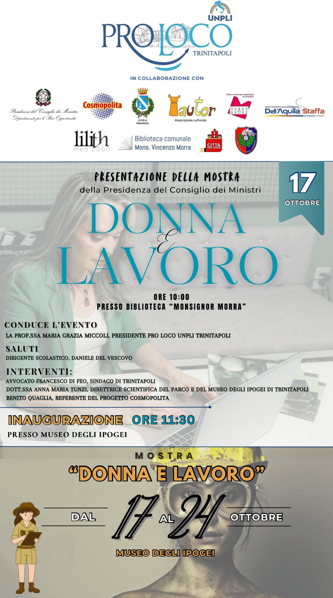 L’Associazione Culturale Tautor ospita presso il Museo Archeologico degli Ipogei la mostra “Donne e Lavoro”, organizzata dalla Pro Loco UNPLI Trinitapoli, in collaborazione con la Presidenza del Consiglio dei Ministri, Dipartimento delle Pari Opportunità.
